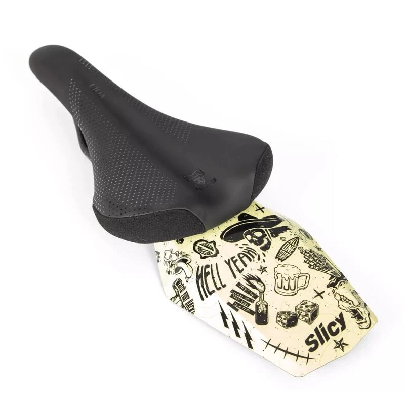Protégez votre derrière des projections de boue avec le garde-boue arrière Slicy VTT. Il se fixe sous la selle de votre VTT en 2 minutes ! Choisissez parmis les 20 designs disponibles.